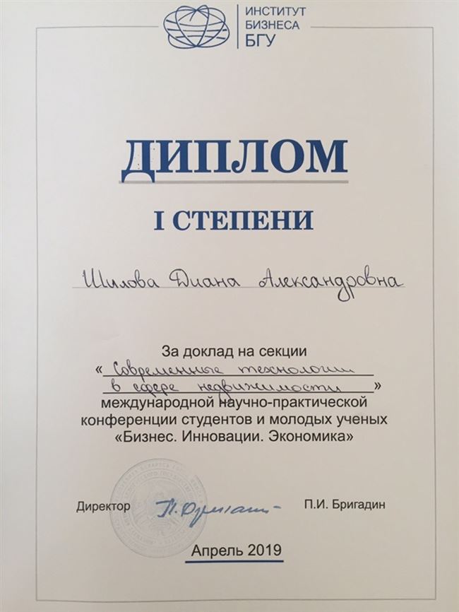 Одним из основных направлений работы конференции стала секция «Современные технологии в сфере недвижимости». Работа секции проходила в Институте бизнеса БГУ. Наивысшую оценку и диплом 1 степени получил доклад студентки третьего курса Белорусского государственного технологического университета Шиловой Дианы на тему «PROPTECH 3.0: Экономика совместного потребления», научный руководитель С.Шавров.