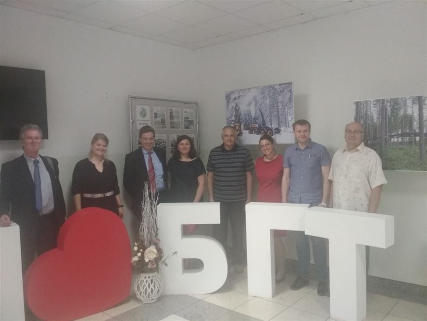 Слева направо: Mr. Christiaan Lemmen; Mrs. Paula Dijkstra; Mr. Ruud; Ольга Батура; Сергей Шавров; Mrs Mila Koeva; Евгений Россоха; Андрей Сакович – проректор по учебной работе БГТУ