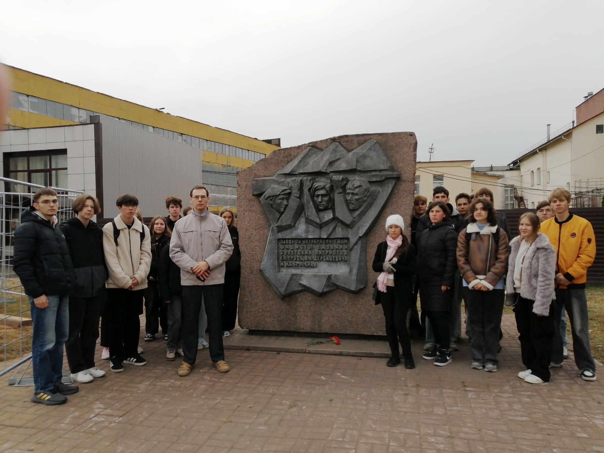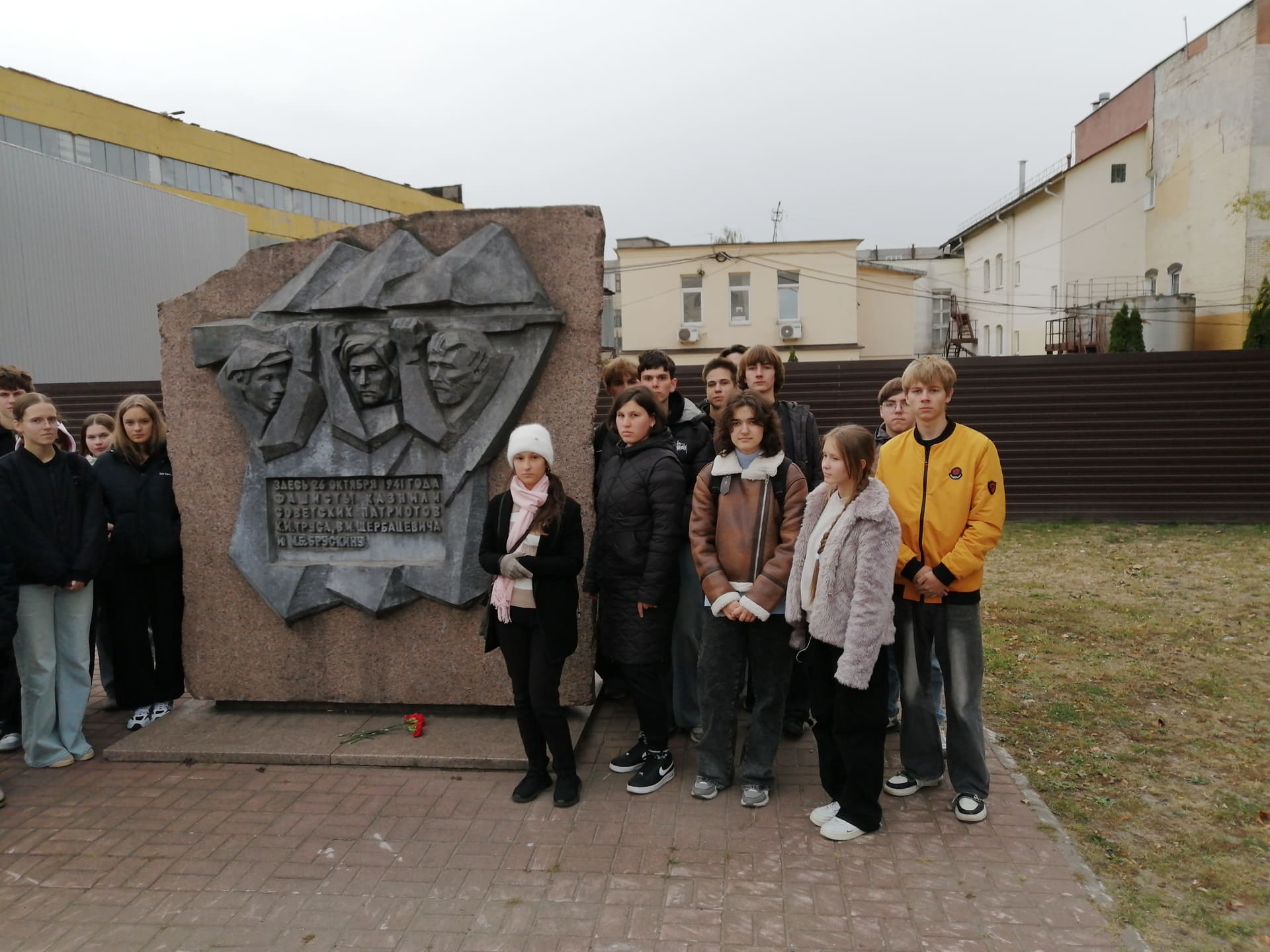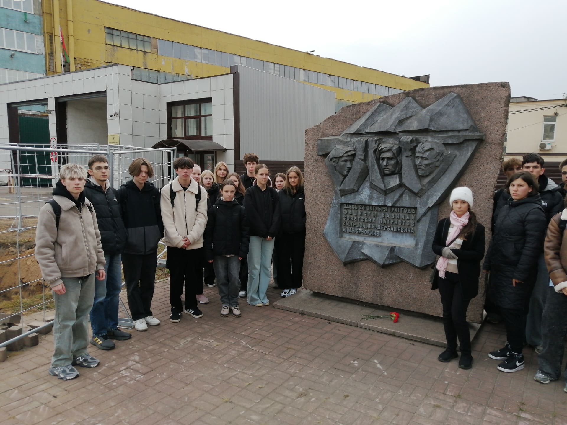 2 октября студенты 1 курса специальности «Принттехнологии» вместе с доцентом кафедры полиграфических производств Сипайло Сергеем Владимировичем возложили цветы к памятнику-мемориалу казненным советским патриотам, которые являлись участниками минского подполья в начале Великой Отечественной войны.