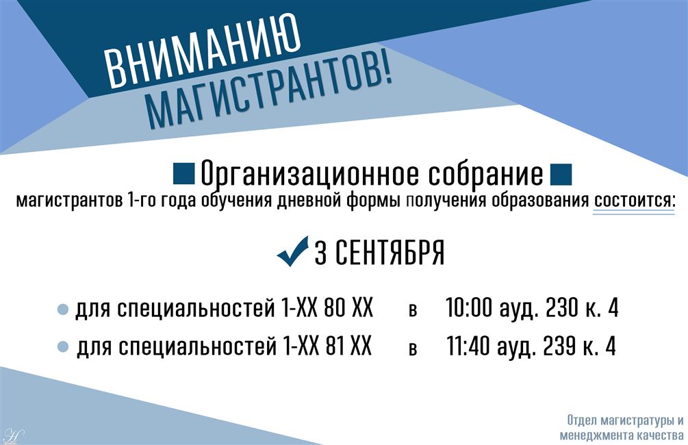 Собрание магистрантов 1-го года обучения