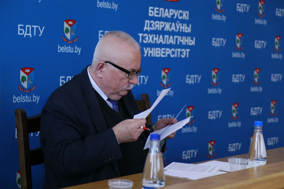 С докладами по вопросу «О состоянии учебной, учебно-методической, научной, идеологической и воспитательной работы на кафедре технологии стекла и керамики» выступили заведующий кафедрой технологии стекла и керамики, доцент Павлюкевич Ю.Г. и председатель комиссии по проверке, профессор кафедры полимерных композиционных материалов Крутько Э.Т.