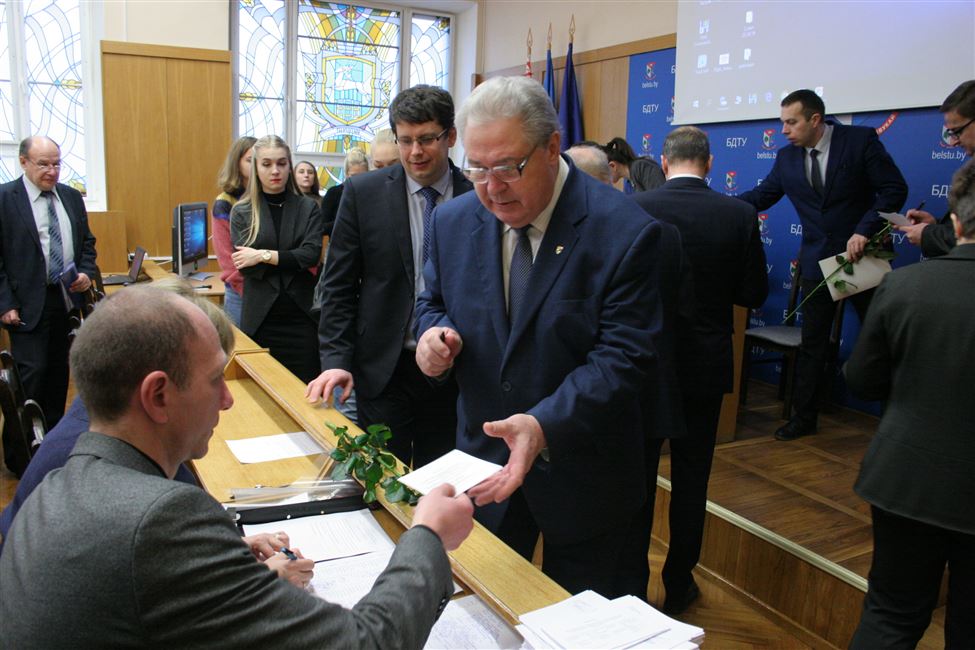 Открывая заседание совета, ректор университета Игорь Войтов вручил награды сотрудникам университета, внесших значительный личный вклад в развитие науки и в связи с Днем белорусской науки: