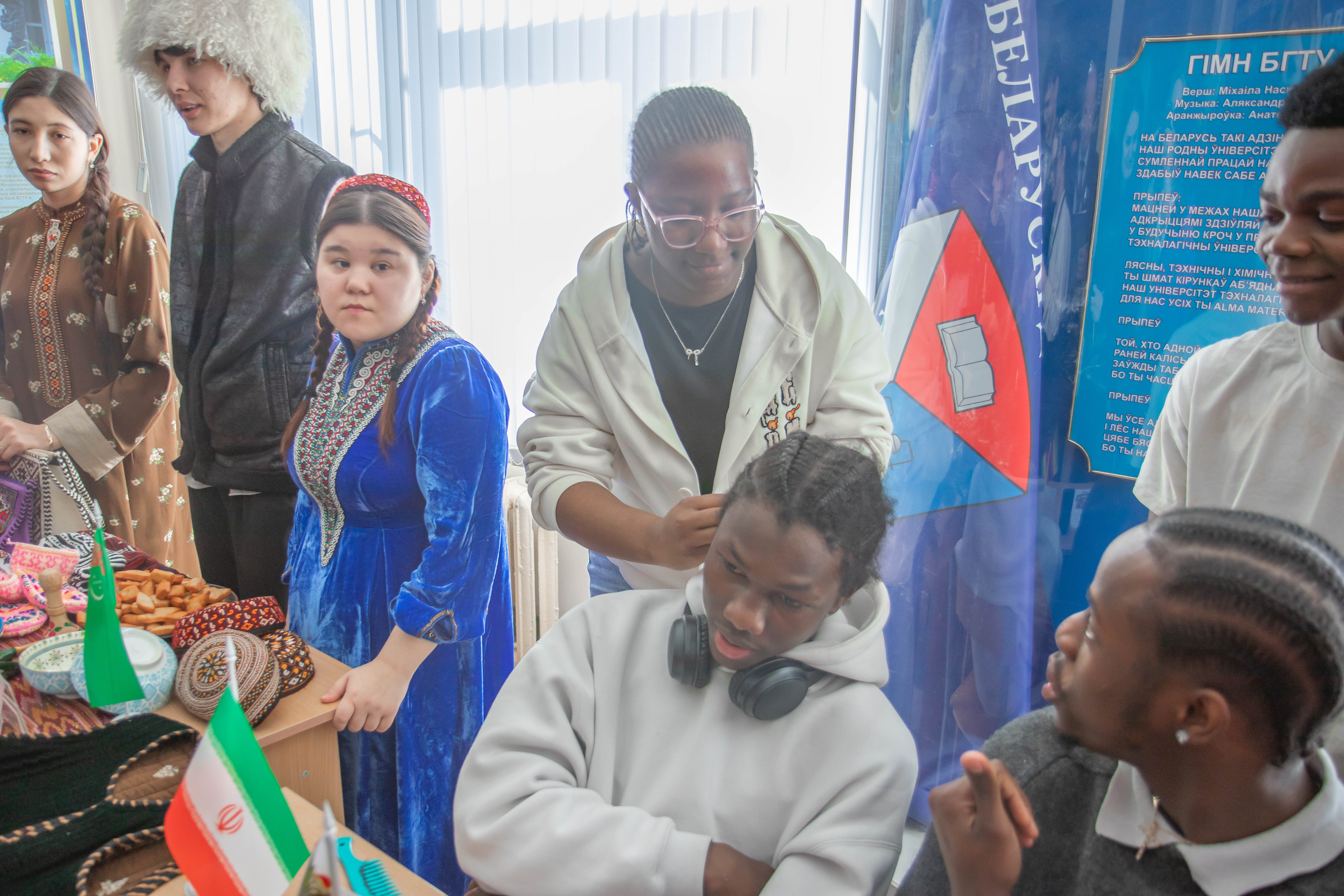 Команда «Тигр» провела мастер-класс по плетению косичек. Студентка из Зимбабве создала сложную причёску всего за 15 минут, рассказав об истории этого искусства.