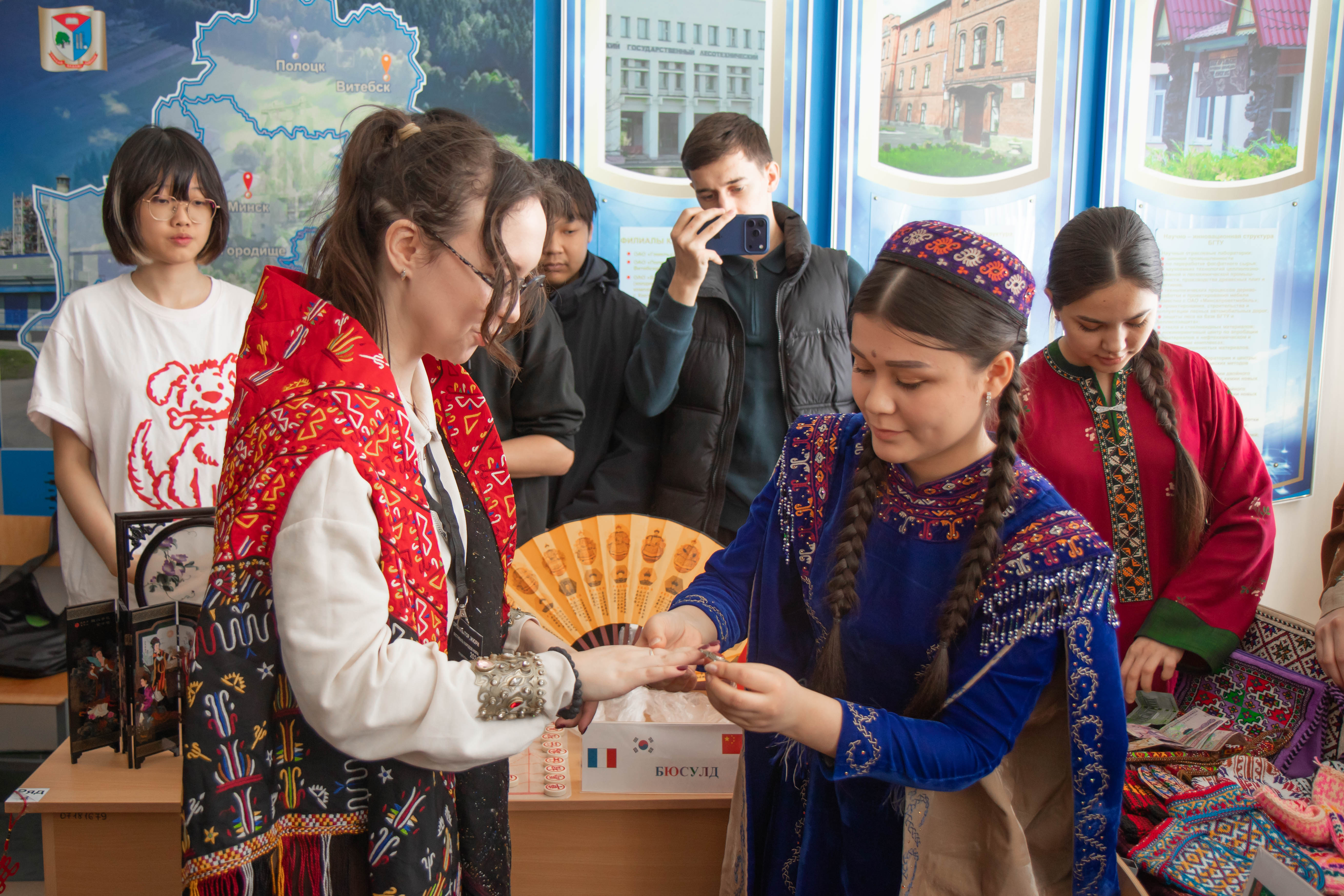 Сегодня, 1 апреля, в фойе второго этажа 4-го корпуса продолжается "Фестиваль народов мира". Третий день стал настоящим праздником традиций и культур. Участники конкурса представили этнические обычаи и ритуалы своих стран, приглашая всех желающих к активному участию. Каждая команда тщательно выбирала традиции для демонстрации — от всемирно известных праздников до редких обрядов, отражающих уникальный быт и философию народа.