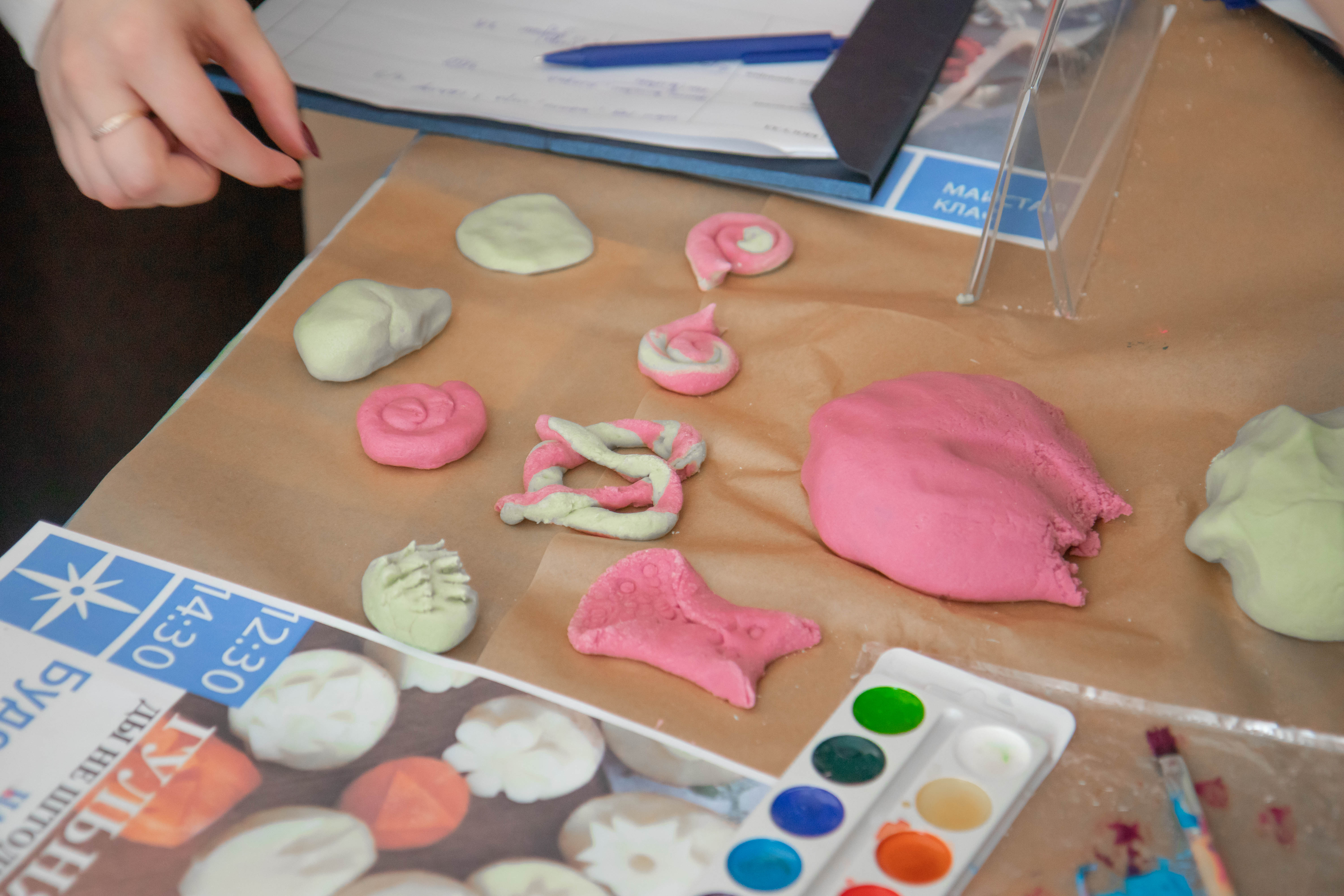Команда «Беларусь» представила ремёсла: технику «цацкаванне» (трафареты из картофеля), лепку из солёного теста и роспись ткани (батик).
