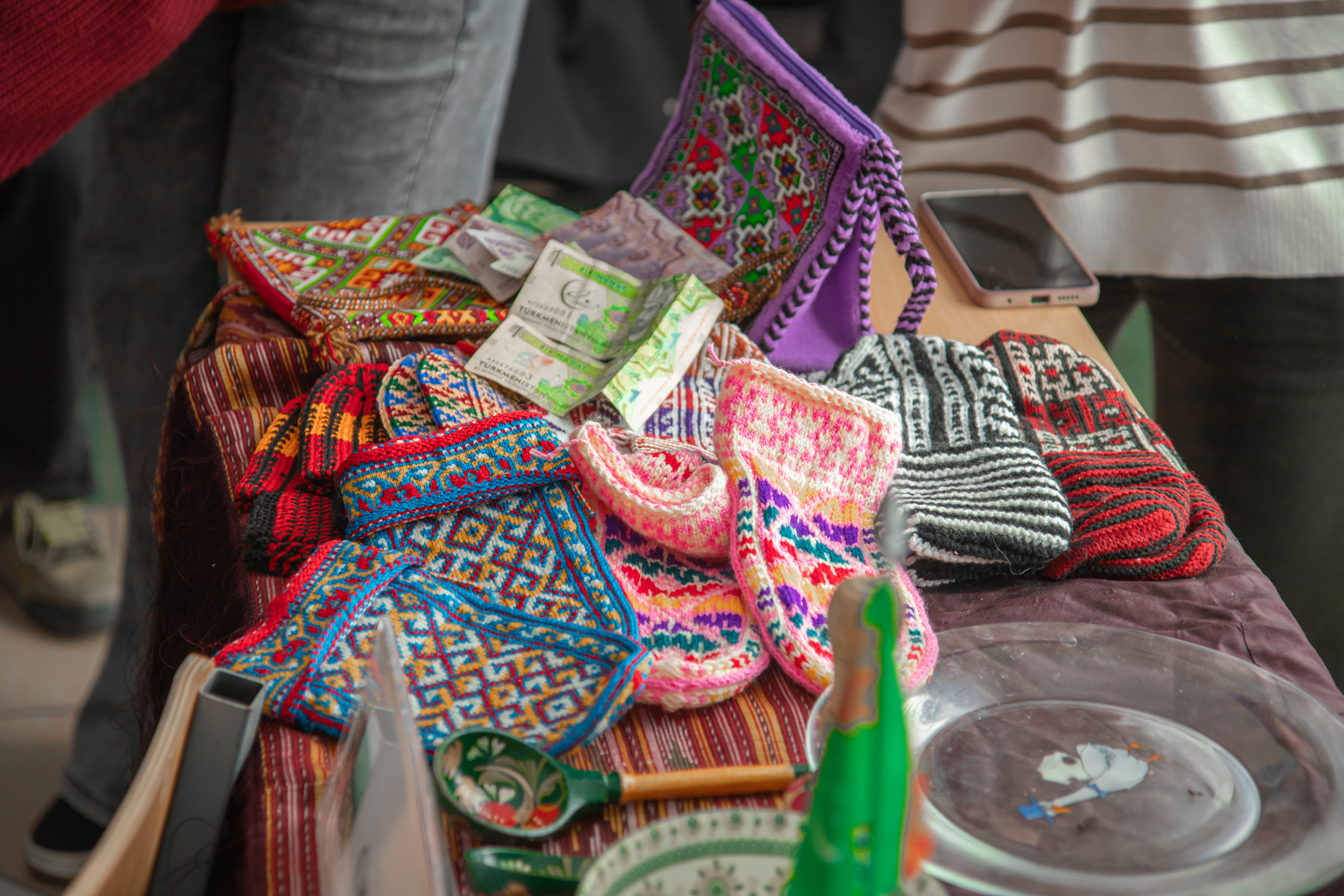 Команда «Сила внутри» организовала выставку предметов туркменской культуры. Гости могли примерить костюмы, украшения, головные уборы и увидеть уникальные изделия: денги, сладости, ручную посуду и сумки.