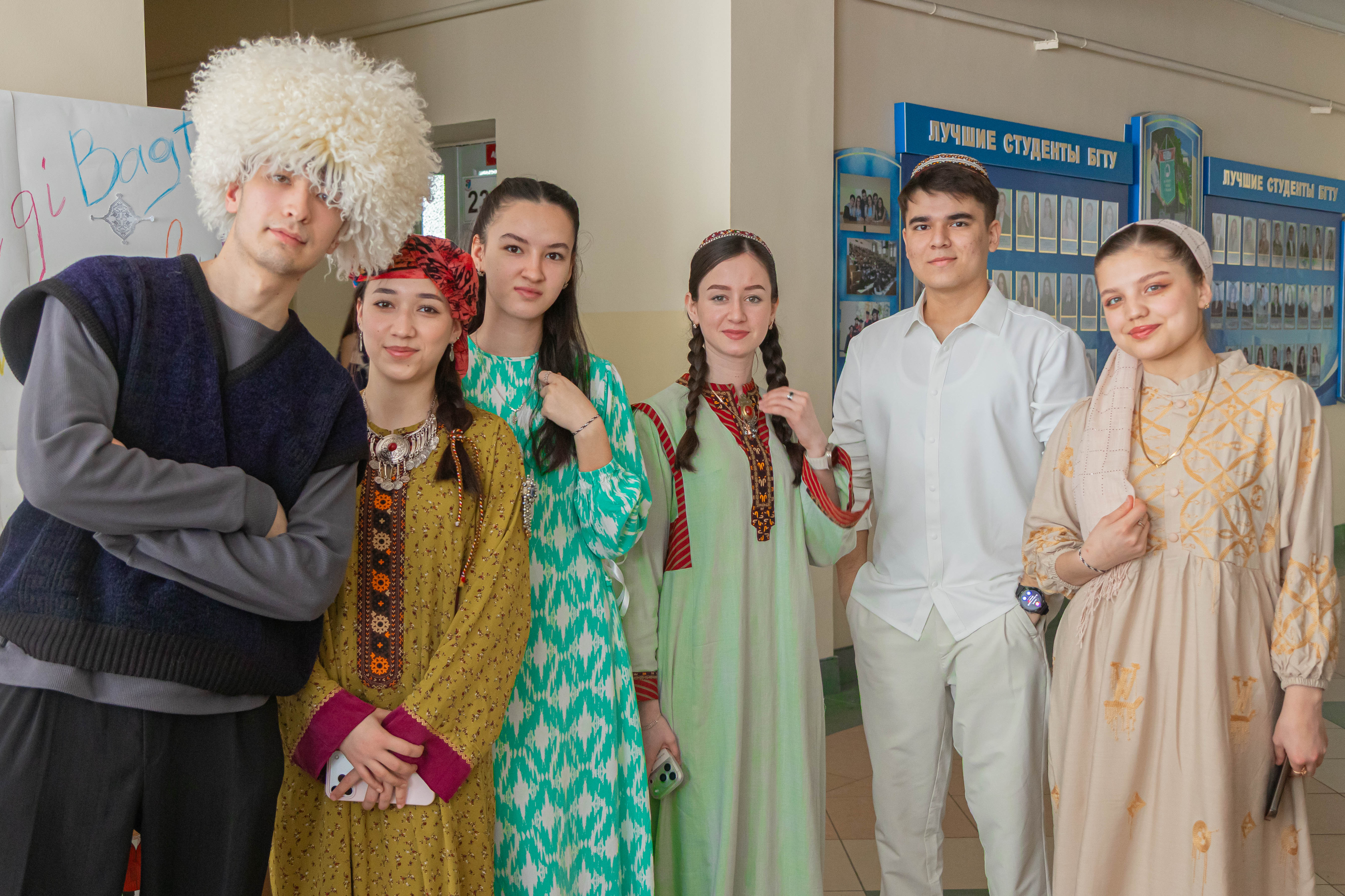 Первой представилась команда из Туркменистана — «Фантастическая семерка». Ребята рассказали и показали одну из самых ярких национальных особенностей — обряд приёма гостей. В туркменской культуре гость считается особым человеком, его встречают с большим почётом. Для гостя обязательно накрывают стол с лучшими угощениями, создавая тёплую и радушную атмосферу. Все семейные и праздничные мероприятия традиционно проходят на полу, покрытом ковром, что символизирует единство семьи и уважение к обычаям. Особое внимание было уделено народным ремёслам: