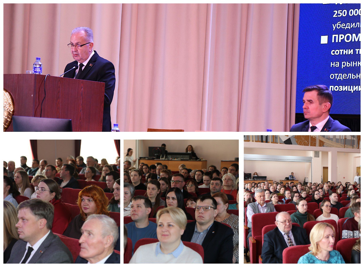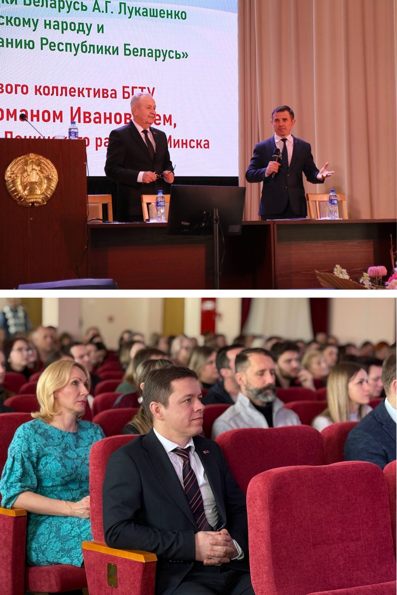 В своем выступлении глава района детально разобрал стратегические задачи, поставленные Главой государства, и напрямую увязал их с практикой развития Ленинского района, приведя примеры реализованных проектов и новых планов. Слова признательности Роман Иванович адресовал коллективу БГТУ, поблагодарив за вклад в подготовку инженерно-технических кадров и «плодотворную, нужную стране работу».