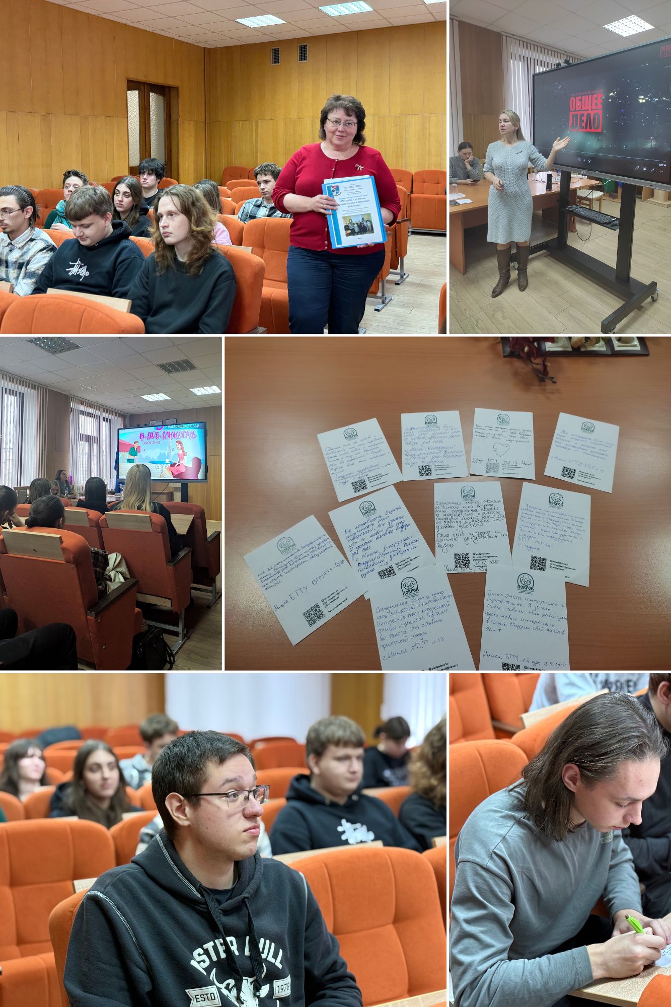 Особый интерес у аудитории вызвал диалог с приглашенным экспертом – Оксаной Михайловной Плютовой, методистом фонда защиты материнства и детства «Покров». Опираясь на практический опыт, она помогла студентам разграничить понятия мимолетной влюбленности и глубокого чувства любви, основанного на ответственности, уважении и готовности к самопожертвованию. Выступление переросло в живое обсуждение, в ходе которого участники задавали вопросы и делились своими размышлениями и отзывами: «Было очень познавательно, актуально и интересно. Узнали много о теме, которая сейчас очень важна для нас, как молодёжи. Обсудили свой личный опыт и рассуждали на тему отношений»; «Мне очень понравился этот кураторский час, я узнала много полезной информации, которая помогла мне переосмыслить некоторые вещи и, безусловно, эта информация пригодится мне в жизни. Спасибо!»; «Было очень интересно, многое узнал, повторил, что-то для себя выделил. Очень нравятся такие мероприятия».
