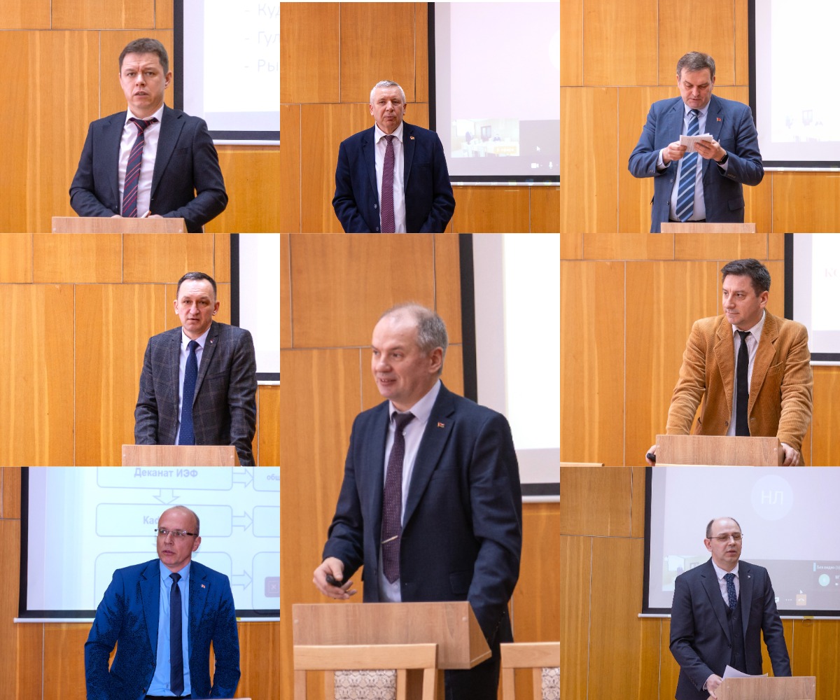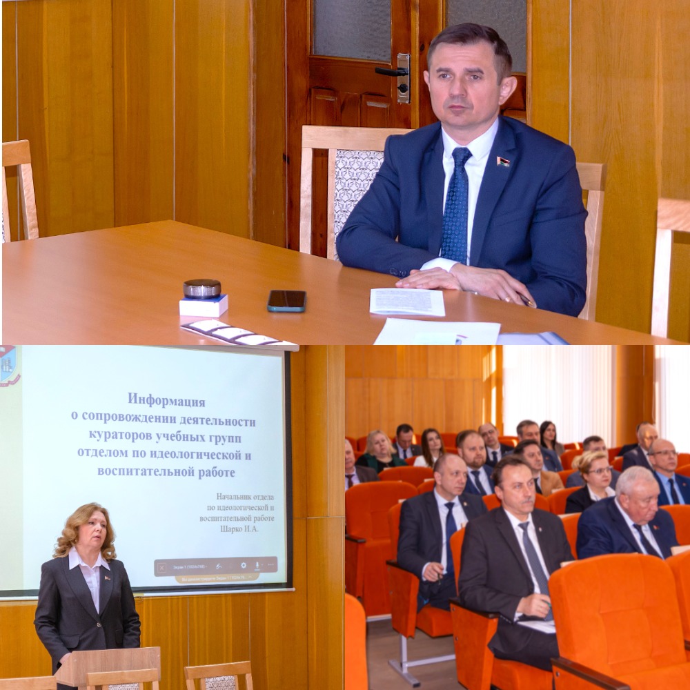 Первый вопрос повестки дня касался эффективности работы факультетов с кураторами учебных групп. Докладчиками выступили проректор по идеологической и воспитательной работе Д.В. Гапанюк и начальник отдела по идеологической и воспитательной работе И.А. Шарко. Все деканы факультетов подробно отчитались перед ректоратом о работе своих кураторов.