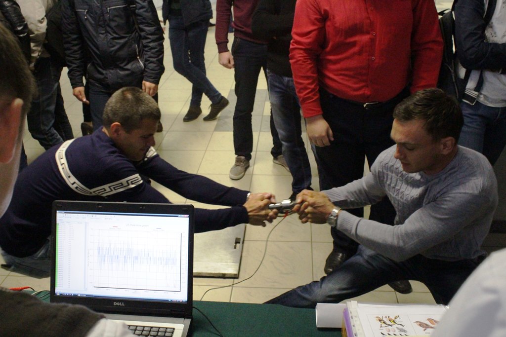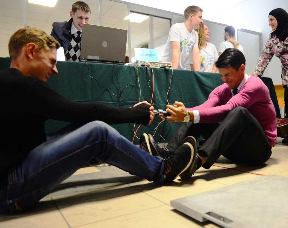 Суть второго конкурса "Сила интеллекта": в индивидуальном зачете один участник растягивал перед своей грудью датчик силы. Выигрывал тот участник, у кого датчик силы показывал наибольшее мгновенное значение. В парном зачете правила были те же, но датчик силы растягивали два участника.