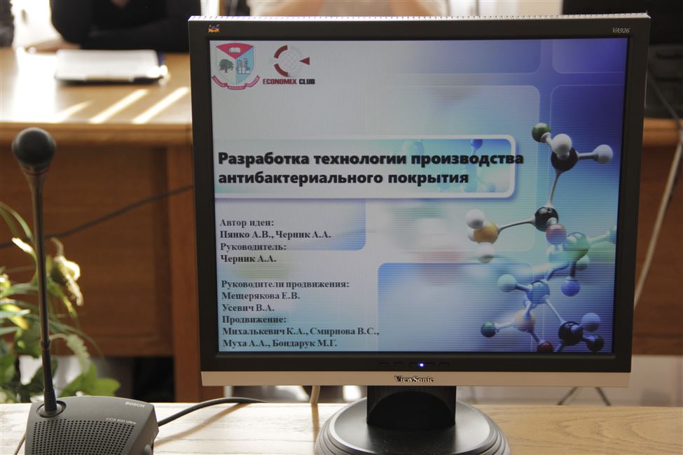 1 место «Продвижение вспененных теплоизоляционных материалов» (Веко А.А., Боталко О.В., Ляшук Л.В., Звертовский А.А., Жих Б.П. - БГТУ)2 место «Антибактериальное композиционное покрытие» (Михалькевич К.А., Смирнова В.С., Муха А.А., Бондарук М.Г., Пянко А.В. - БГТУ)