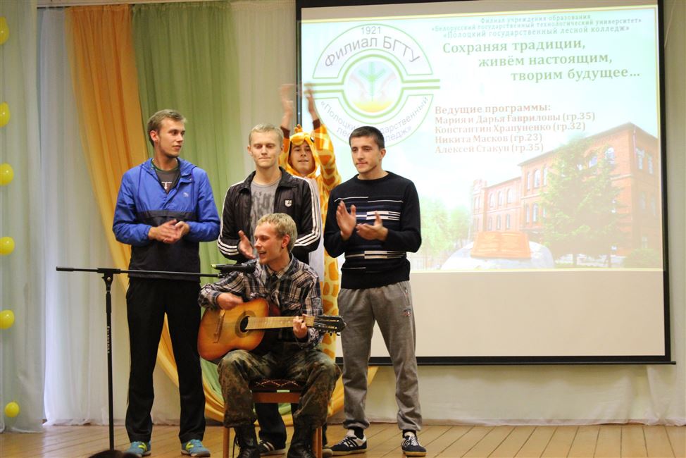Первый, творческий этап, проходил в актовом зале колледжа. В течении трех минут командам необходимо было представить себя. Команда лесохозяйственного факультета выступила с песней, исполненной под гитару, которая была бурно воспринята зрителями.