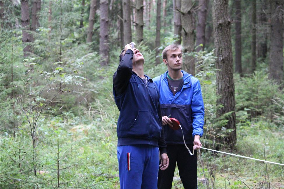 На станции лесной таксации с помощью приборов студенты должны были определить основные показатели леса. С данной задачей команда БГТУ справилась лучше всех, набрав 13 баллов из 10 возможных – вдобавок ко всем правильным измерениям, набрав бонусы за время, сплоченность и правильное пользование инструментом.