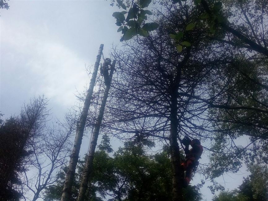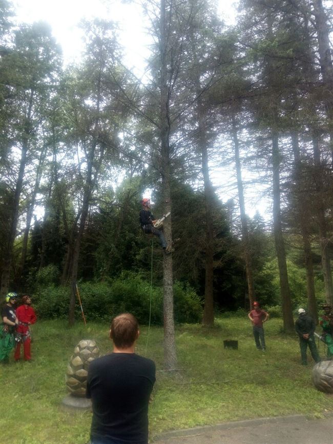 В рамках показательных тренировок в ботаническом саду НУОЛХ специалистами проведены верхолазные работы по обрезке березовой аллеи и удаление 6 крупномерных пораженных пихт, лечение 4 деревьев псевдотсуги и пихты.