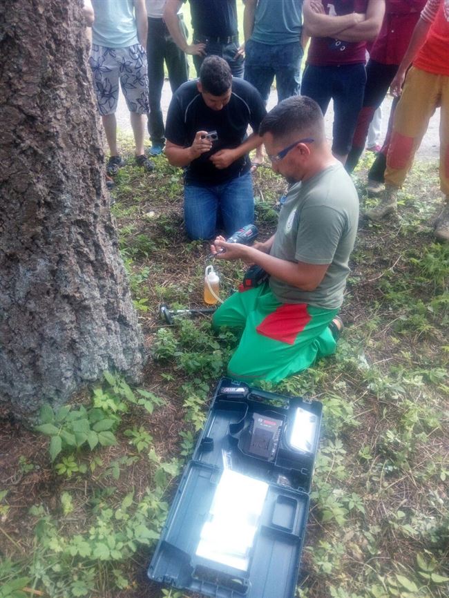 Организатор встречи Степан Латыпов продемонстрировал работу установки Медведтех ИВ 82 М (новой модификации) предназначенной для измельчения древесных остатков, а также свои фирменные препараты для лечения деревьев и оборудование для проведения стволовых инъекций.