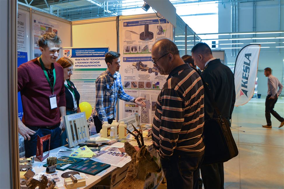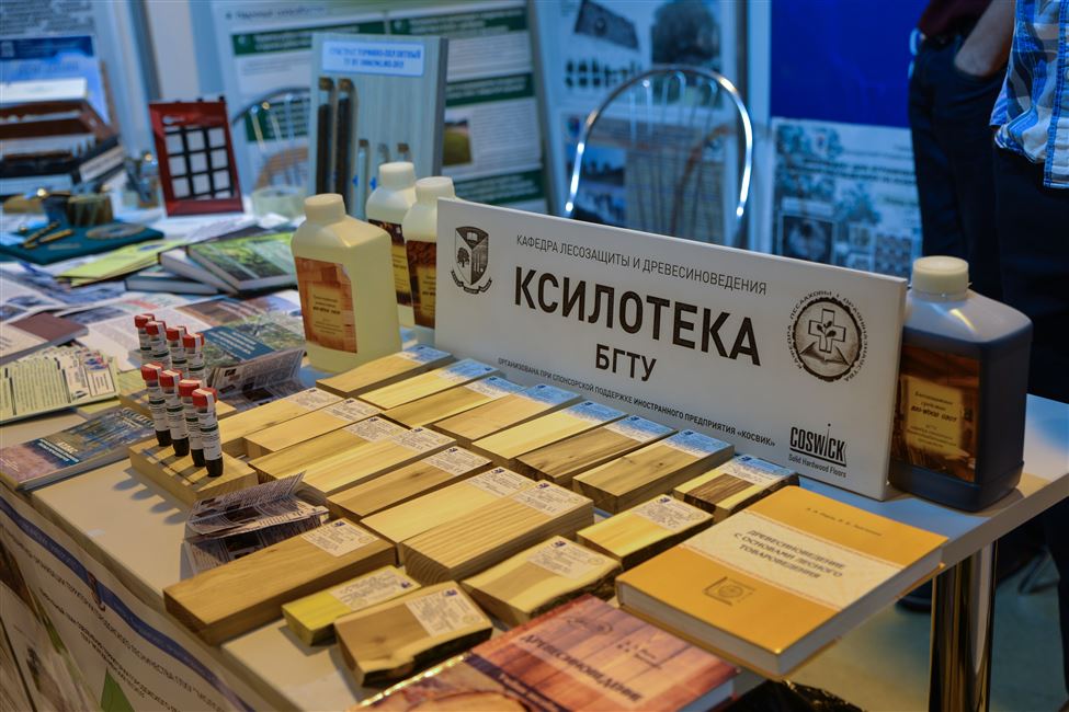 Стенд Белорусского государственного технологического университета представлен новейшими разработками в лесной отрасли. Особенный интерес у гостей вызвала уникальная Ксилотека БГТУ, также не остались без внимания детали, предоставленные кафедрой МиПТС.