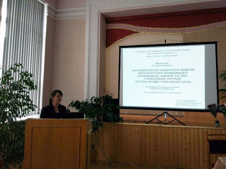 14 сентября 2017 года в Совете по защите диссертаций К 01.53.01 при Республиканском научном дочернем унитарном предприятии «Институт защиты растений» состоялась защита диссертационной работы на соискание ученой степени кандидата биологических наук (специальность: 06.01.07 - защита растений) ассистента кафедры ландшафтного проектирования и садово-паркового строительства Волченковой Галины Александровны.