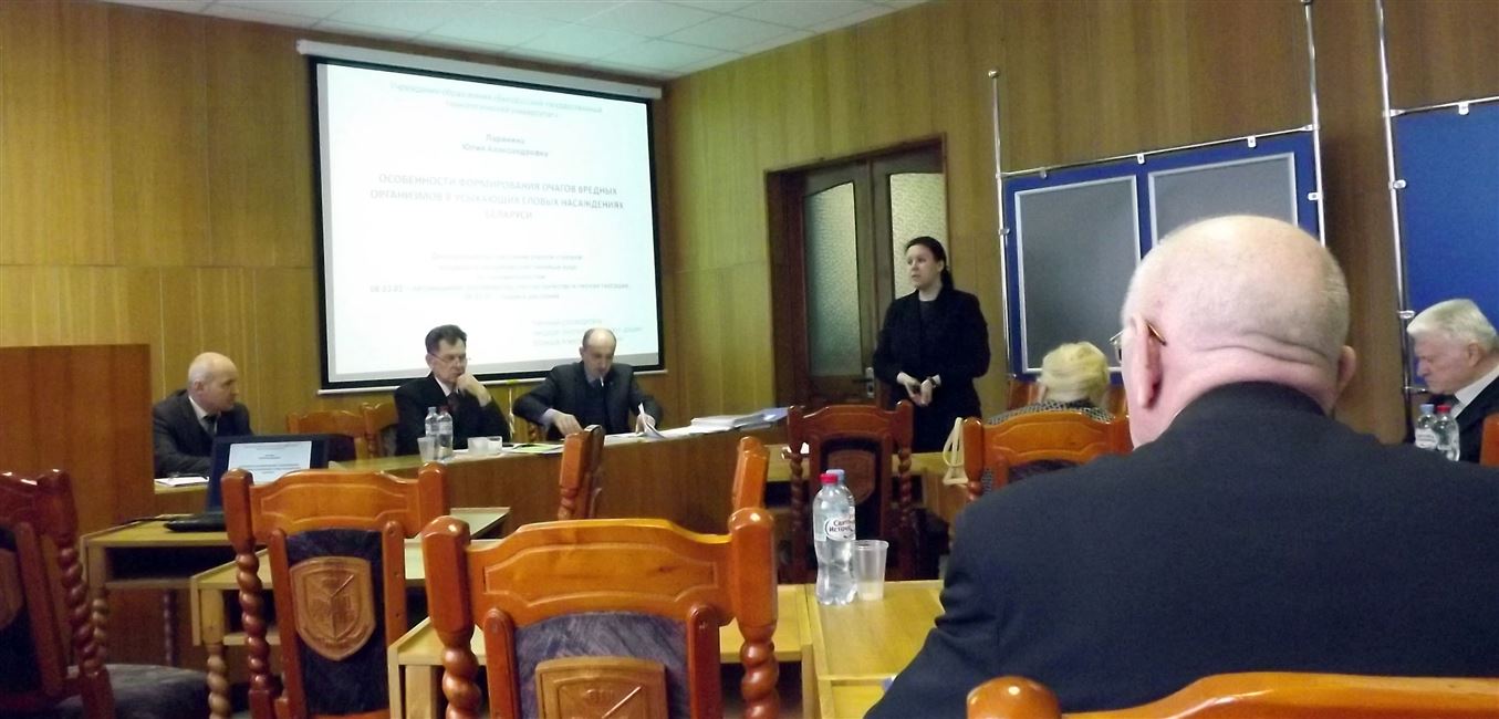 14 февраля 2017 года в Совете по защите диссертаций К 02.08.01 в Белорусском государственном технологическом университете  состоялась защита диссертационной работы на соискание ученой степени кандидата сельскохозяйственных наук (специальностям:  06.03.02 – лесоведение, лесоводство, лесоустройство и лесная таксация; 06.01.07 - защита растений) младшего научного сотрудника Ларининой Юлии Александровны.