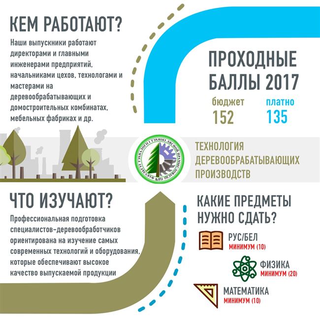 - «Технология деревообрабатывающих производств» (выпускающие кафедры: кафедра технологии деревообрабатывающих производств; кафедра технологии и дизайна изделий из древесины)