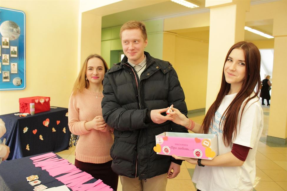 14 февраля 2018 года с 9.30 до 15.40 Профкомом студентов в рамках празднования Дня всех влюбленных были проведены следующие акции: