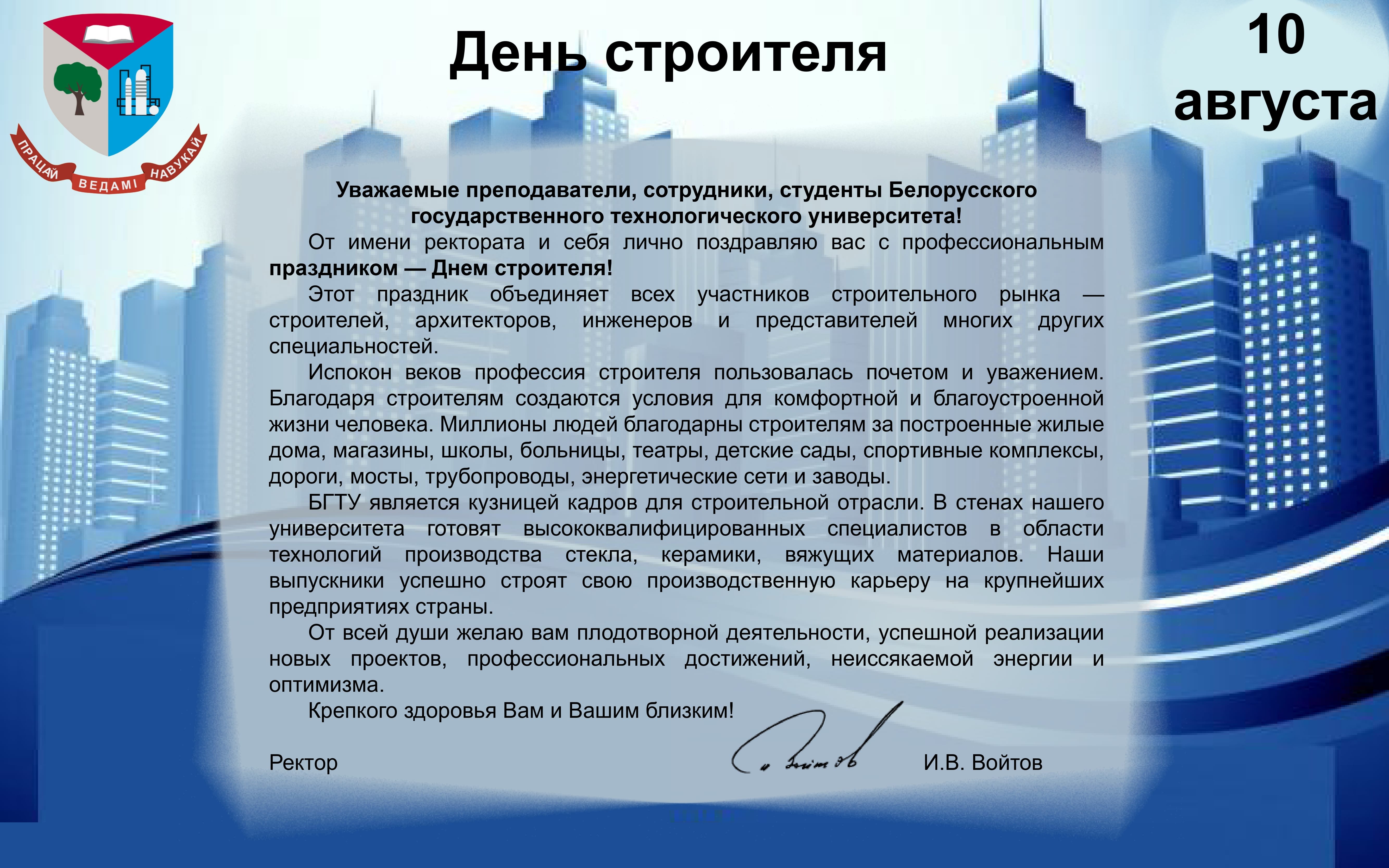 Ректор БГТУ Игорь Войтов поздравляет с Днем строителя