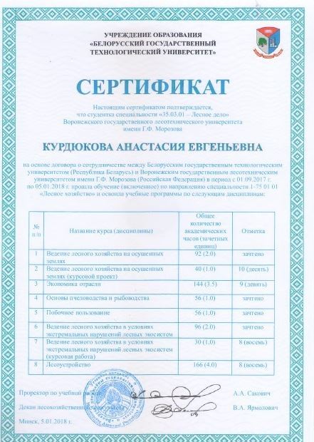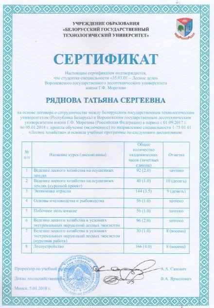 Подошло к финалу обучение в БГТУ Рядновой Татьяны Сергеевны и Курдюковой Анастасии Евгеньевны  – студенток Воронежского государственного лесотехнического университета имени Г. Ф. Морозова. Обучение проходило на лесохозяйственном факультете по программе бакалавриата «Лесное дело».
