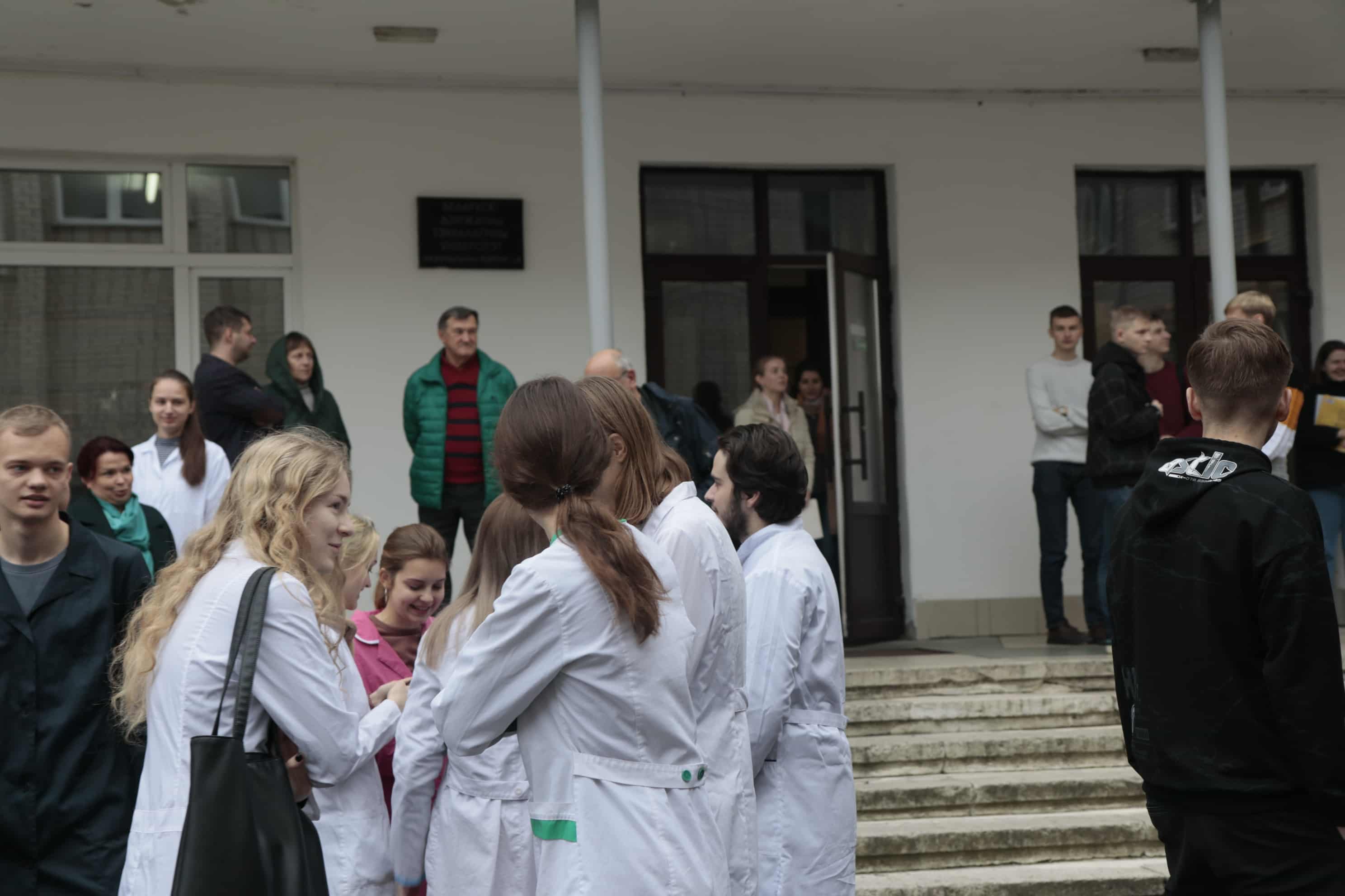 Тренировка по эвакуации прошла без происшествий – студенты и сотрудники университета организованно покинули здание вуза согласно плану эвакуации.